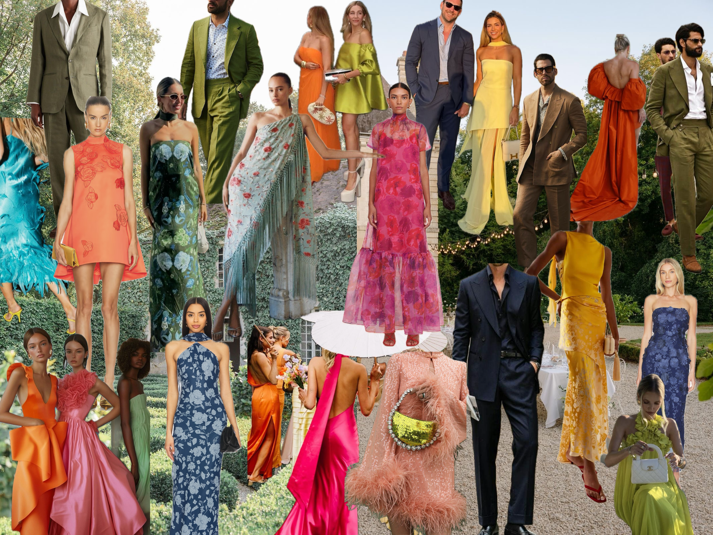 The wedding will take place entirely outdoors in a vibrant garden beside a beautiful pool, where the terrain will range from natural earth and soft grass to a fine pebble gravel. We recommend wearing shoes that are comfortable with a lower or wider heel, if applicable.